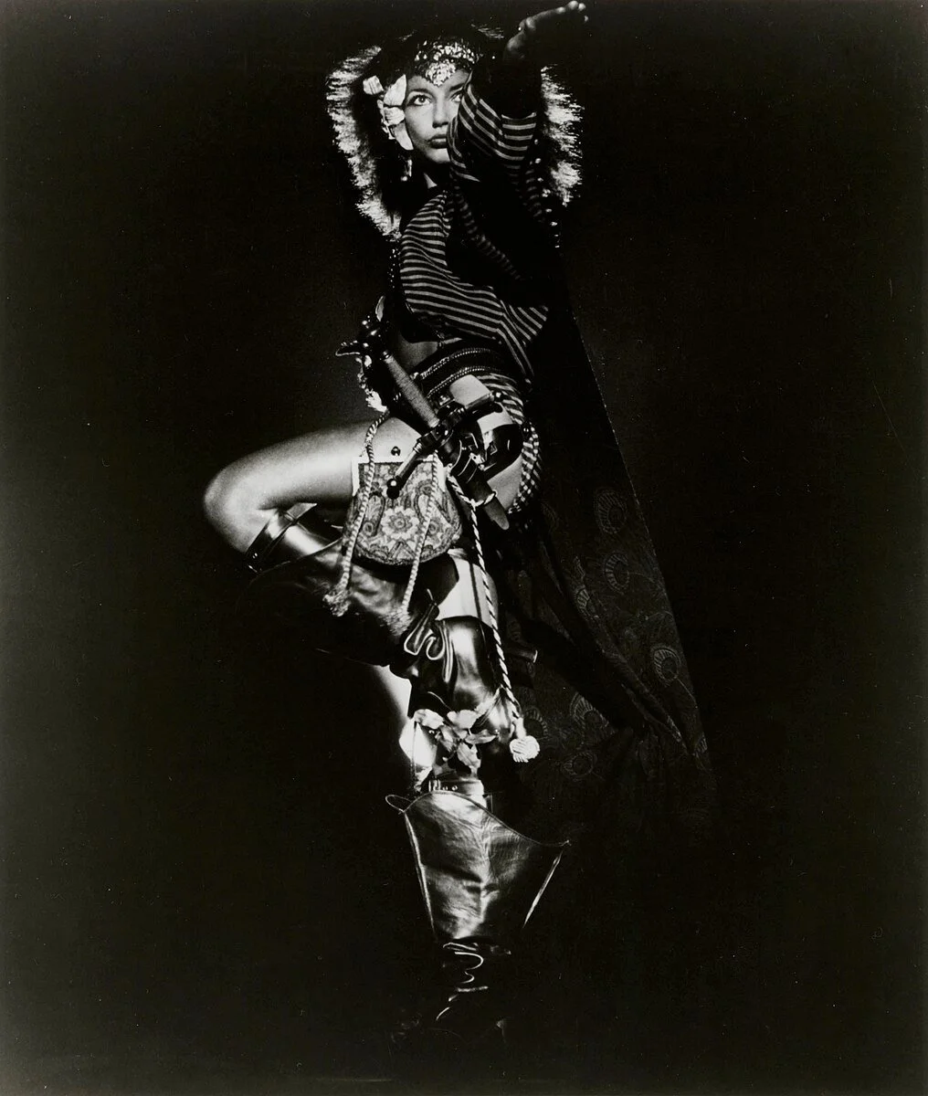 Distributed by EMI America, 1980, Kate Bush dressed as "Babooshka", distributed as a publicity photo for her 1980 album Never For Ever.